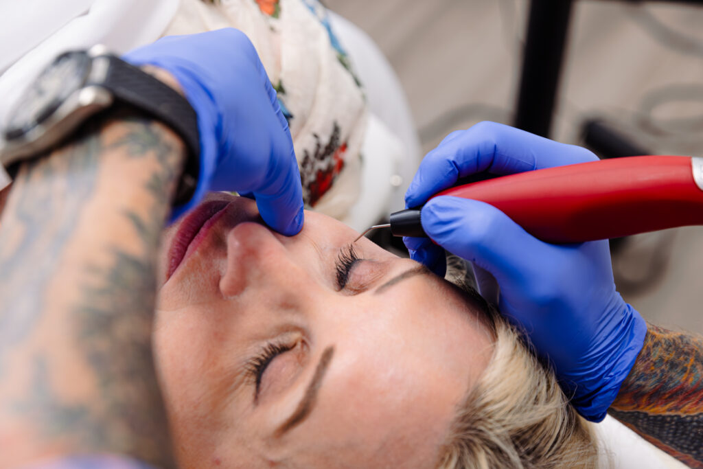 A provider performs an under-eye bags treatment in Lenexa with Plasmage.